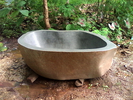 C'est par la salle de bains que la mutation vers des produits naturels est apparue en premier. Aujourd'hui, il n'est pas rare de voir trôner une baignoire en pierre naturelle. A la solidité des matériaux se mêle des teintes nouvelles foncées. La force de la pierre brute, c'est également l'irrégularité des couleurs, l'apparition de nuances s'étalant parfois sur quelques centimètres.